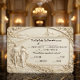Set the tone for your formal estate wedding with this artistic design featuring a monochromatic ivory palette and a classical faux stone sculpture aesthetic.This design utilizes a trompe l'oeil technique to simulate the depth and shadow of a 3D bas-relief sculpture. The scene depicts a romantic couple walking along a cobblestone path toward a distant country chapel, framed by an ornate architectural arch and intricate rose borders. The color palette is strictly monochromatic, utilizing shades of cream, ivory, and soft grey to mimic the look of carved limestone or plaster. The typography features a formal black serif font for the header, paired with an elegant script, ensuring high contrast against the light stone-effect background.