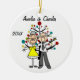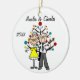 A pretty round ceramic keepsake Christmas holiday ornament features a stick figure elderly couple in front of a decorated Christmas tree with areas you can customize with names and the current year! This cute holiday keepsake ornament makes a great gift for grandparents, for a new elderly couple who just met in the current year, for couple's who have been together for 50 years!