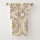 This bold mandala design radiates outward in layers of olive green, soft blush rose, and deep berry tones. The centre features a burst of petal-like shapes that expand into concentric rings of organic patterns, each one alternating between smooth curves and geometric accents. The balance of symmetry and movement creates a mesmerizing effect that draws the eye inward while keeping the overall composition dynamic. With its warm yet vibrant colour palette and hypnotic rhythm of lines, this design feels both modern and timeless, perfect for anyone who appreciates striking geometric patterns and layered visual detail.