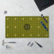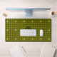 Un design classique en houndstooth dans des tons pas si classiques de vert olive crée un motif amusant et mis à jour avec un accent final d'or métallique mélangé dans pour créer un design qui va vraiment éclater. Customisez le monogramme dans le cercle avec votre initiale pour créer un tapis de bureau unique pour votre travail ou espace de jeu.