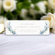 Des branches d'olivier peintes à la main ornent cette adresse funéraire délicate et élégante avec des accents d'aqua doux, bleu et or