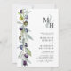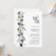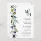 Olive Branch Symbol of Love Monogram Wedding Invitation with QR Code RSVP on Back... The front of our botanical monogram wedding invitation features the bride's and groom's initials overlaid on a pastel ampersand above personalized invitation text in black serif and sans serif typography on a white background. Bordering the invitation text on the left is a beautiful watercolor olive branch in shades of dusty green, dark blue, and purple. The back of the invitation includes your wedding website QR code as well as the website's URL allowing your invitees to easily RSVP online and view all of the details normally sent in a wedding packet. The example QR code and all example text (aside from the ampersand and calligraphy elements) can be easily revised with your own information on the personalization template.
