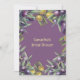 A beautiful wreath filled with a green leaf border frame filled with purple and yellow olive fruits set against a purple background that may be changed to any colour of your choice. The back has the same graphic illustration and all templates may be personalized to suit your bridal shower, outdoor country wedding, small orchard theme budget friendly weddings or a milestone celebration.