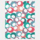 This large fleece blanket has mid-century modern design of circles in blue, teal, pink, purple and berry with white ovals inside.