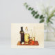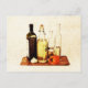 Olive evoo oil bottles and veggies postcard