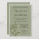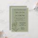 Wedding Invitation with a green flower graphic. The background is Olive green. Perfect for fall wedding invitations. Customize with your wedding information and details.