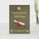 Diploma image on the rich olive background with ornamental decorative stripe, graduation cap and inscription "Congratulations" in distressed gold leaf look. Add name of your graduate or leave blank by deleting Add Name