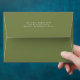 Olive Green coloured envelopes that match the Pine Woods Watercolor Wedding Collection. Please check the La Bella Rue shop for many other colours. Add your return address to the back flap. Address prints in white. If you need a certain colour or have a questions please email me paula@labellarue.com BEFORE YOU CUSTOMIZE or place an order.
