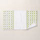A stylish olive green and white diamond-patterned bathroom towel set.