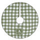 Olive Green And White Gingham Plaid Monogram Brushed Polyester Tree Skirt