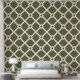 Olive Green and White Modern Lattice Wallpaper