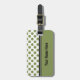 Personalized olive green and white polka dot luggage tag. Personalize with your own text.