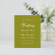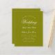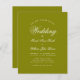 A simple, minimalist budget wedding invitation. It has only white text on olive green background. The word Wedding and the names are written in an elegant calligraphic script.