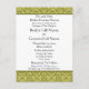 Olive Green Damask on White Wedding Invitation Postcard - No Envelope Required - Save with Postcard Postage Rates too- All In One - RSVP Included on Card On Front - Very Affordable Wedding Invitations