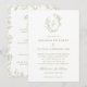 Olive Green Floral Line Art Monogram Crest Wedding Invitation