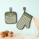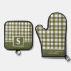 Olive Green Gingham Plaid Chequered Monogrammed Oven Mitt & Pot Holder Set