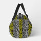 This duffle bag's striking design combines vibrant colours and bold patterns to create a stylish and eye-catching accessory. The abstract digital pixelated stripes in shades of olive green, grey, and black give it a unique and modern look that's sure to turn heads. Whether you're heading to the gym, running errands, or travelling, this duffle bag is both functional and fashionable, making it a great addition to any outfit.