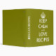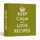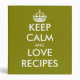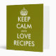 Olive green keep calm and love recipes binder book. Make your own Keep calm and carry on spoof parody. Cute keepcalm cooking or baking gift idea for women. Funny kitchen cookbook design with large vintage typography print.