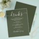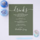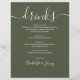 These elegant script olive green minimalist drinks menus are perfect for any celebration. Designed by Thisisnotme©