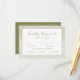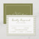 Trending olive green wedding RSVP card for a modern elegant wedding celebration. This refined minimalist design reflects quiet luxury and modern botanical aesthetics, perfect for the classic modern bride planning a vineyard, garden, or coastal wedding. Style with olive envelope liners, gold calligraphy pens, and striped day-of stationery for a cohesive editorial wedding suite.