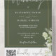 Olive Green QR Code Gold Arch Greenery Wedding All In One Invitation