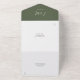All in one wedding invitation featuring elegant signature script name and monogram initials on an olive green background. The invitation includes a perforated RSVP card with your wedding website QR code and details. Designed by Thisisnotme©