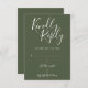 This elegant olive green and white RSVP card can be personalized in chic white lettering. You can add additional information such as menu choice on the reverse. Perfect for weddings, bridal showers, baby showers, baptisms, engagement parties, anniversary celebrations, graduations, birthdays and other special events throughout the year! Designed by Thisisnotme©