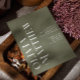 Modern minimalist wedding invitation and details with photo + QR Code on back side in shades of dark olive green and sage green colours. Please contact me if you need additional items.
