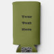 Seltzer Can Cooler Koozie Sleeve with customizable template Your Text Here typography printed with Olive Green Solid Colour background illustration and select products collection by TheFabricSeal print on demand shop at Zazzle.com #ZazzleMade https://www.zazzle.com/store/thefabricseal
