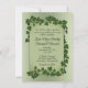 A lovely invitation with borders of green leaves. Put the first names of the couple on one side with all the wedding information and salutation from the mother and father of the bride.