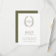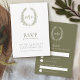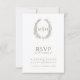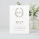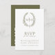 Olive green white hand drawn leaf monogram wedding RSVP card