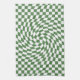 Olive Green & White Warped Chequered Pattern Kitchen Towel