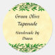 An elegant border of green olive leaves on a light, faux parchment background. for your custom projects. Just add your own name or personal text to use this design for olive tapenade, homemade soap labels, canning jars or tags. Click Customize It to change fonts, sizing, background, even save your design for later!