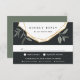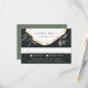Designed to coordinate with our Olive Leaf wedding collection, this fresh green botanical RSVP card with meal choice features olive branch foliage and golden geometric elements topping your desired response date and custom accept and decline wording. A rich, inky off-black background adds dramatic appeal. Ask guests to indicate their choice of entree in advance by filling in your meal choices on the last line.