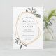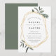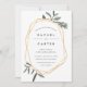 Our elegant botanical Olive Leaf wedding invitation frames your wedding details with a chic gold geometric border, with hand drawn olive leaf illustrations peeking out at the corners. Modern lettering in inky off-black completes the look. Invitations reverse to solid dusty olive green.
