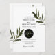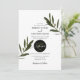 This design features olive leaves and branches. The beautiful greenery of the olive leaves compliment the elegant black modern circle shape encircling the wedding date. A perfect fusion of modern and chic with rustic olive colours. Olive green, black and white are a perfect match for a Mediterranean themed wedding. Unique wedding invitation design with modern elements. Matching wedding stationery items and other wedding invite formats are also available.