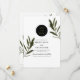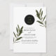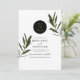 This design features olive leaves and branches. The beautiful greenery of the olive leaves compliment the elegant black modern circle shape encircling the title. A perfect fusion of modern and chic with rustic olive colours. Olive green, black and white are a perfect match for a Mediterranean themed wedding. Unique wedding Save the Date card design with modern elements. Matching wedding invitations and other stationery items are also available.