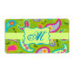 Add a splash of color with this paisley design and personalize with your monogram, initials or name. You will find many uses for these stickers. The bold colors of this trendy paisley design features an olive green background with a lime green strip and emblem for personalization. Bright, fresh, modern paisleys make a beautiful artistic design that includes inspirational words of Love, Hope, Faith, Inspire, Cherish, Be Happy, Dream, and Live in the background between the paisleys. This Mod Paisley collection, designed by Phyllis Dobbs, uses the colors of teal, turquoise, lime green, wine, yellow, fuchsia and orange to create a fun and whimsey take on the traditional and popular paisley motif. The paisley motif is timeless in appeal but this original art is both trendy and contemporary. Fully customizable for personalization with your own words to add your own message.