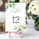 Minimalist wedding table number with olive branches and greenery accents in a clean botanical style. Designed as a reception table number and wedding table plan, this natural wedding decor fits modern and elegant weddings.
