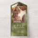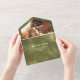 Olive Sage Green Shimmer Line Background Photo All In One Invitation