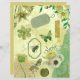 Olive Sea Green Garden Collage Scrapbook Paper. This design is a collage of different kinds of sunflowers, roses, butterfly, honeybee, gift tag, handwritten script and frame.