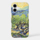 Olive Trees with the Alpilles in the Background by Vincent van Gogh is a vintage fine art post impressionism landscape painting. An orchard on a farm full of olive fruit trees with a view of a mountain range in the distance. It is one of over a dozen landscapes of olive trees that van Gogh painted while living in the south of France.