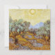 Olive Trees with yellow sky and sun. Vincent Willem van Gogh. Landscape in warm yellow tones. Large garden with large trees. Mountains in the background. There is a big bright sun in the sky. Reproduction of famous works of art images in the public domain.