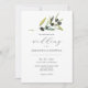 Save on paper and money with this budget wedding invitation with QR code for rsvp. An elegant and classy design, this sustainable wedding invite features both calligraphy typography with a classic sans font. Botanical watercolor olive branch greenery frames your details. The card reverses to your wedding QR code and space for additional details over a sage green background. For more budget wedding invites visit www.zazzle.com/dotellabelle