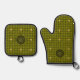 Olive with Gold Accent Houndstooth Oven Mitt & Pot Holder Set