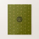 A classic houndstooth design in not-so-classic shades of olive green creates a fun and updated pattern with a final accent of a metallic-like gold mixed in to create a design that will really pop. Customize the monogram on this puzzle with your initial to make it uniquely your own.