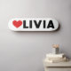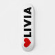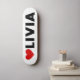 The name Olivia with the letter o replaced with a red love heart. The colours can be changed.