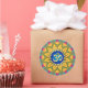 Powerful energy geometric mandala in energizing yellow, hot pink and royal blue with golden Om symbol in the centre. Spirit healing energy designed with love by Webgrrl.biz