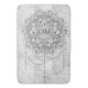 This massive , lotus mandala with its many ornate layers and fine chains dangling from it is the centerpiece on silver marble ceramic squares where mandala meets marble where in the middle of the lotus mandala is a sphere where you can personalize it with a letter, logo, name or just keep the letters OM creating zen-like vibes.