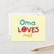 Oma Loves Me T-shirts, cards, stickers, bodysuits bags, and more with colourful red, yellow, and blue text and heart design. These Oma Loves me apparel and gift items will make Oma smile!